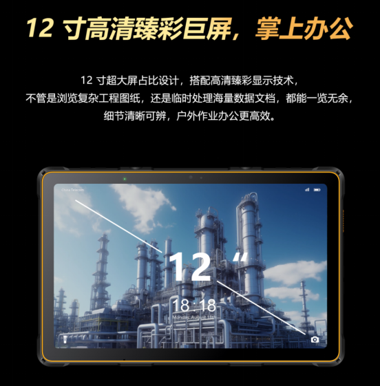 12 英寸黄金尺寸,既能保证便携,又能实现超大视野。电力巡检看接线图、铁路探伤看波形、车间操作 MES 表单、现场调试看参数,一屏展示完整信息,不用来回切换、不用反复放大缩小,信息清晰不费眼,