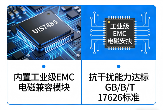 再看宽温适应性,这是业工芯片的硬指标。T760常规工作温区为-10℃~60℃,极端环境下性能衰减明显;UIS7885直接拓宽至-20℃~70℃宽温域,经过高低温循环、湿热老化双重测试,在极寒、高温厂区环境,无惧户外全天候作业,依旧能保持95%以上性能输出。