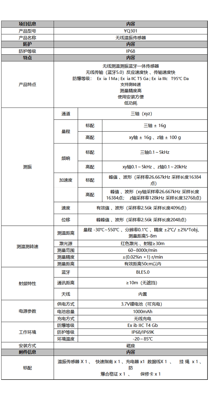 无线防爆温振传感器YQ301